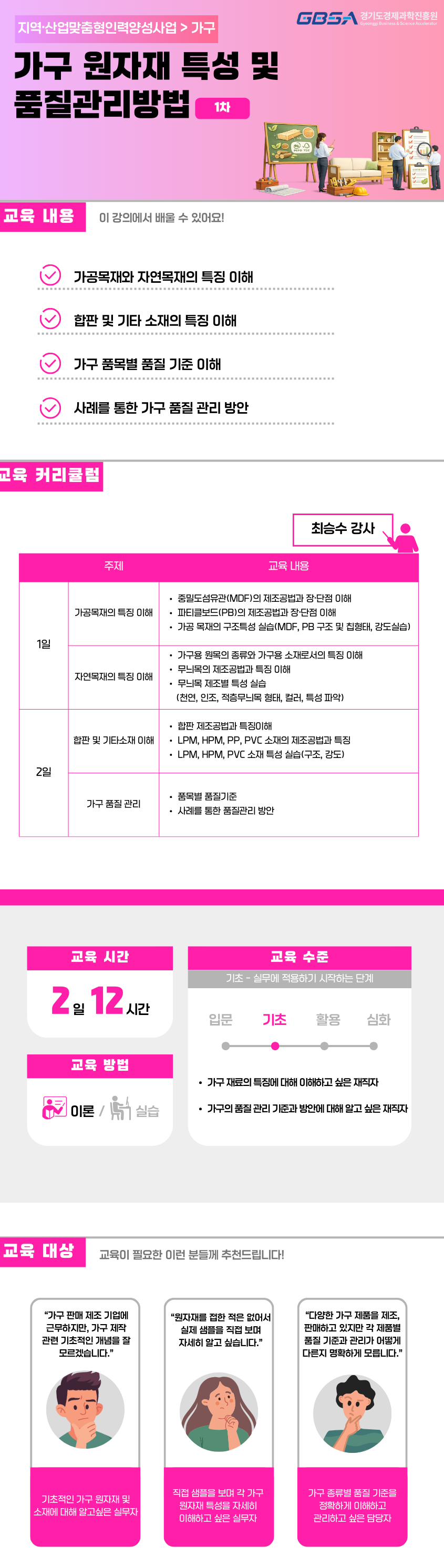 올해도 가구 분야 무료 교육을 개설하였습니다.